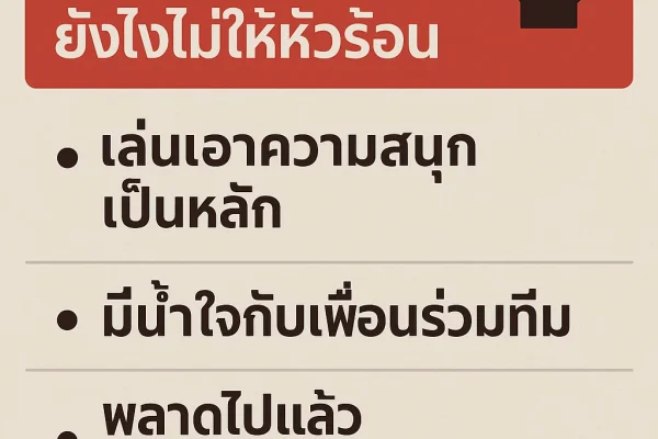 Valorant เทคนิคการเล่น Solo Queue ยังไงไม่ให้หัวร้อน บทนำ เทคนิคการเล่น Solo Queue การเล่น Valorant ในโหมด Competitive แบบ Solo Queue คือประสบการณ์ที่ผู้เล่นหลายคนทั้งรักและเกลียดในเวลาเดียวกัน เพราะคุณไม่สามารถเลือกทีมเมตได้เอง ต้องอาศัยโชคและการปรับตัวกับเพื่อนร่วมทีมที่ไม่รู้จักกันมาก่อน ซึ่งบ่อยครั้งก็อาจเจอปัญหา Toxic, ไม่สื่อสาร, หรือเล่นไม่จริงจัง สิ่งเหล่านี้ทำให้หลายคน “หัวร้อน” และเสียสมาธิจนพลาด บทความนี้จะพาคุณมาดู เทคนิคการเล่น Solo Queue ให้สนุกและมีโอกาสชนะมากขึ้น โดยไม่หัวร้อน พร้อมแชร์รีวิวจากผู้เล่นจริงที่ปรับทัศนคติได้จนไต่แรงก์ขึ้นสำเร็จ 1. เริ่มจาก Mindset ที่ถูกต้อง รีวิวผู้เล่น:“ก่อนหน้านี้ผมหัวร้อนตลอดเวลาเล่น Solo แต่พอเปลี่ยนความคิดว่าเล่นเพื่อฝึกแทนที่จะเล่นเอาชนะอย่างเดียว ความกดดันลดลงเยอะ” – คุณบอล (Gold) 2.